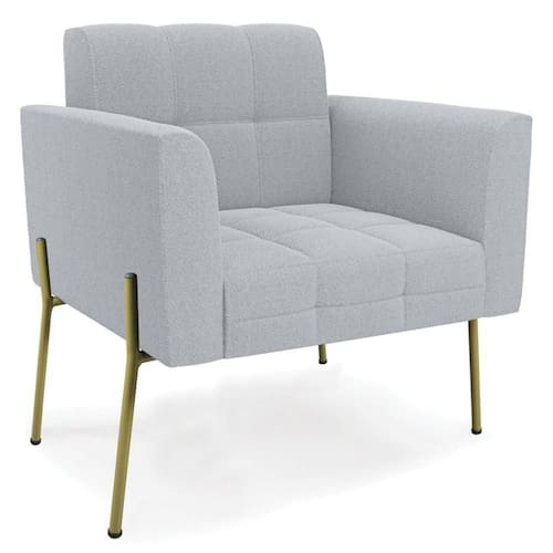 Se você quer uma poltrona que combine com a sua Sala De Estar, recepção ou seu quarto, que ofereça conforto e qualidade? Então você vai adorar a Poltrona Para Sala Pés Metálicos Dourado Ana Bouclé Cinza, da Ibiza!