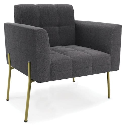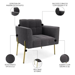 Se você quer uma poltrona que combine com a sua Sala De Estar, recepção ou seu quarto, que ofereça conforto e qualidade? Então você vai adorar a Poltrona Para Sala Pés Metálicos Dourado Ana Bouclé Grafite, da Ibiza!