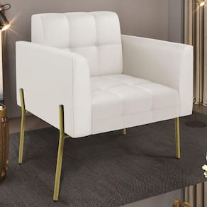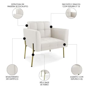 Que tal uma poltrona que combine com a sua Sala De Estar, recepção ou seu quarto, que ofereça conforto e qualidade? Então você vai adorar a Poltrona Para Sala Pés Metálicos Dourado Ana Sintético Bege, da Ibiza!