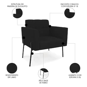 Você está procurando uma poltrona que combine com a sua Sala De Estar, recepção ou seu quarto, que ofereça conforto e qualidade? Então você vai adorar a Poltrona Para Sala Pés Metálicos Preto Ana Linho Preto, da Ibiza!