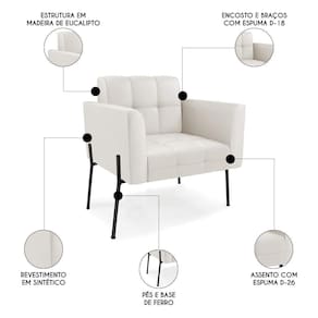 Você está procurando uma poltrona que combine com a sua Sala De Estar, recepção ou seu quarto, que ofereça conforto e qualidade? Então você vai adorar a Poltrona Para Sala Pés Metálicos Preto Ana Sintético Bege, da Ibiza!