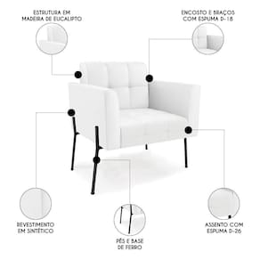 Você está procurando uma poltrona que combine com a sua Sala De Estar, recepção ou seu quarto, que ofereça conforto e qualidade? Então você vai adorar a Poltrona Para Sala Pés Metálicos Preto Ana Sintético Branco, da Ibiza!