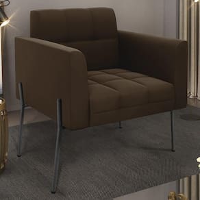 Você está procurando uma poltrona que combine com a sua Sala De Estar, recepção ou seu quarto, que ofereça conforto e qualidade? Então você vai adorar a Poltrona Para Sala Pés Metálicos Preto Ana Suede Marrom White, da Ibiza!