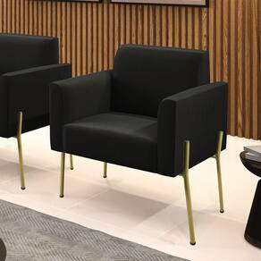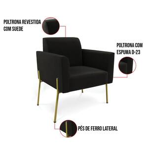 Poltrona Pé de Ferro Dourado Decorativa Marisa Suede D03 - D`Rossi - Preto