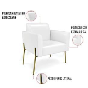 Todo mundo gosta de um ambiente bem decorado, e se for novidade melhor ainda não é mesmo? A D'Rossi, além de entregar beleza, qualidade e confiança aos clientes, ela dispõe das melhores opções em produtos, disponíveis no mercado! Portanto, se você quer um produto sofisticado, opte pela Poltrona Marisa. Ela possui um design lindo e sofisticado, com pés de Ferro Lateral Dourado e revestimento em tecido Corano Branco, que harmonizam com qualquer ambiente. Esta mobília fica perfeita na sala de estar, recepções, mesa de jantar ou qualquer outro espaço que você queira decorar com estilo e bom gosto. Ela contém uma estrutura em madeira de reflorestamento eucalipto, que garante a resistência e a sustentabilidade do produto. Ela suporta até 120 kg de peso, podendo ser utilizada por pessoas de diferentes biotipos. Ela tem um acabamento reforçado e espuma de qualidade D-23, garantindo flexibilidade e conforto ao usuário. A Poltrona Marisa é um produto de alta qualidade, beleza e funcionalidade. Ela é fácil de transportar, pois tem um peso leve e um tamanho compacto. A Poltrona Marisa é ideal, para dar aquele realce que seu ambiente precisa. Tenho certeza que esse móvel é a melhor compra que você irá fazer. Garanta já seu kit 2 Poltronas Marisa e se acomode da melhor maneira possível!