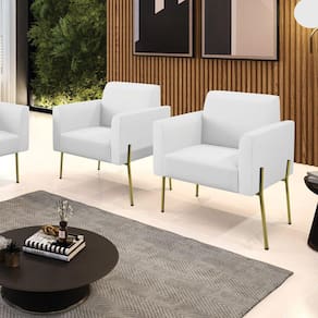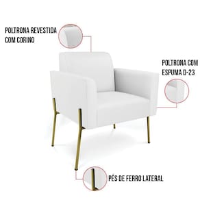 Todo mundo gosta de um ambiente bem decorado, e se for novidade melhor ainda não é mesmo? A D'Rossi, além de entregar beleza, qualidade e confiança aos clientes, ela dispõe das melhores opções em produtos, disponíveis no mercado! Portanto, se você quer um produto sofisticado, opte pela Poltrona Marisa. Ela possui um design lindo e sofisticado, com pés de Ferro Lateral Dourado e revestimento em tecido Corino Branco, que harmonizam com qualquer ambiente. Esta mobília fica perfeita na sala de estar, recepções, mesa de jantar ou qualquer outro espaço que você queira decorar com estilo e bom gosto. Ela contém uma estrutura em madeira de reflorestamento eucalipto, que garante a resistência e a sustentabilidade do produto. Ela suporta até 120 kg de peso, podendo ser utilizada por pessoas de diferentes biotipos. Ela tem um acabamento reforçado e espuma de qualidade D-23, garantindo flexibilidade e conforto ao usuário. A Poltrona Marisa é um produto de alta qualidade, beleza e funcionalidade. Ela é fácil de transportar, pois tem um peso leve e um tamanho compacto. A Poltrona Marisa é ideal, para dar aquele realce que seu ambiente precisa. Tenho certeza que esse móvel é a melhor compra que você irá fazer. Garanta já seu kit 2 Poltronas Marisa e se acomode da melhor maneira possível!