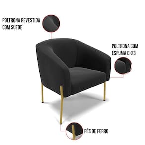 A Poltrona Stella é uma poltrona que combina elegância, conforto e durabilidade. Ela tem um design moderno e sofisticado, com pés de ferro lateral dourado e revestimento em tecido Suede Preto, que harmonizam com qualquer ambiente. Ela é ideal para sala de estar, recepções, mesa de jantar ou qualquer outro espaço que você queira decorar com estilo e bom gosto. Ela tem uma estrutura em madeira de reflorestamento eucalipto, que garante a resistência e a sustentabilidade do produto. Ela suporta até 120 kg de peso, podendo ser utilizada por pessoas de diferentes biotipos. Ela tem um acabamento reforçado e espuma de qualidade D23, que oferece maciez e aconchego. Tem pés em aço carbono e pintura eletrostática, que protegem o produto contra corrosão e desgaste. Ela tem assento com persintas elásticas, que proporcionam flexibilidade e conforto. A Poltrona Stella é um produto de alta qualidade, beleza e funcionalidade. Ela é fácil de transportar, pois tem um peso leve e um tamanho compacto. A Poltrona Stella é um produto que vai fazer a diferença na sua decoração e no seu bem-estar. Ela vai trazer charme, conforto e durabilidade para o seu ambiente. Aproveite essa oferta e leve para casa uma poltrona de qualidade por um preço incrível. Essa é a sua chance de ter uma poltrona maravilhosa por um preço imperdível. Corra e garanta seu Kit 02 Poltronas antes que acabe o estoque!