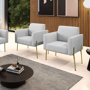 Todo mundo gosta de um ambiente bem decorado, e se for novidade melhor ainda não é mesmo? A D'Rossi, além de entregar beleza, qualidade e confiança aos clientes, ela dispõe das melhores opções em produtos, disponíveis no mercado! Portanto, se você quer um produto sofisticado, opte pela Poltrona Marisa. Ela possui um design lindo e sofisticado, com pés de Ferro Lateral Dourado e revestimento em tecido Linho, que harmonizam com qualquer ambiente. Esta mobília fica perfeita na sala de estar, recepções, mesa de jantar ou qualquer outro espaço que você queira decorar com estilo e bom gosto. Ela contém uma estrutura em madeira de reflorestamento eucalipto, que garante a resistência e a sustentabilidade do produto. Ela suporta até 120 kg de peso, podendo ser utilizada por pessoas de diferentes biotipos. Ela tem um acabamento reforçado e espuma de qualidade D-23, garantindo flexibilidade e conforto ao usuário. A Poltrona Marisa é um produto de alta qualidade, beleza e funcionalidade. Ela é fácil de transportar, pois tem um peso leve e um tamanho compacto. A Poltrona Marisa é ideal, para dar aquele realce que seu ambiente precisa. Tenho certeza que esse móvel é a melhor compra que você irá fazer. Garanta já seu kit 2 Poltronas Marisa e se acomode da melhor maneira possível! Dimensões da Poltrona: Altura total: 81 cm Largura total: 76 cm Profundidade total: 64 cm Altura do encosto: 36 cm Largura do assento: 47 cm Profundidade do assento: 48 cm Altura do chão ao assento: 45 cm Espessura do assento: 18 cm Tamanho dos pés: 30 cm Espessura do braço: 9 cm Peso: 14 kg Especificações do Produto Estrutura: Madeira Eucalipto Espuma: D-23 Tecido: Linho Tipo de pés: Pés de Ferro Dourado Peso suportado: Até 120 Kg Garantia: 90 dias contra defeito de fabricação Montagem: O produto vai montado, apenas parafusar a base Instruções de limpeza: Utilizar um pano limpo e levemente úmido Você irá receber: Poltronas - Entregue em: 02 Volumes