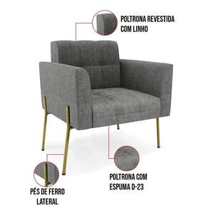Você gosta de colecionar vários momentos memoráveis com sua família e amigos? Que tal recebê-los, com móveis de altíssima qualidade que só a D'Rossi tem? A Poltrona Elisa é adequada para você! Seu design retrô é a grande tendência do momento. Pode ser usada em diversos espaços da casa, em salas, hall de entrada, quartos, cozinhas, varanda, sacada, escritório, dentre outros. Contém as seguintes características: A estrutura é feita Madeira de Eucalipto 100% de reflorestamento, Pés de Ferro Dourado que além de ser resistente e durável, suporta em média até 120 kg. Assento, encosto e braços, contém enchimento de espuma D-23 e é estofada em tecido Linho, que oferece muito conforto e resistência ao sentar, com aquela sensação de maciez e aconchego. Possui também, detalhes de costura no encosto e assento, resultando em um acabamento impecável, conferindo muito mais valor e elegância ao seu espaço. Para complementar a decoração com essa linda poltrona, a dica é utilizar mantas, almofadas ou vasinho de flor. E pronto, seu cantinho estará perfeito para descansar e relaxar! Aqui, você encontra várias opções, para que seus amigos e familiares se sintam acolhidos. Garanta já sua Poltrona.