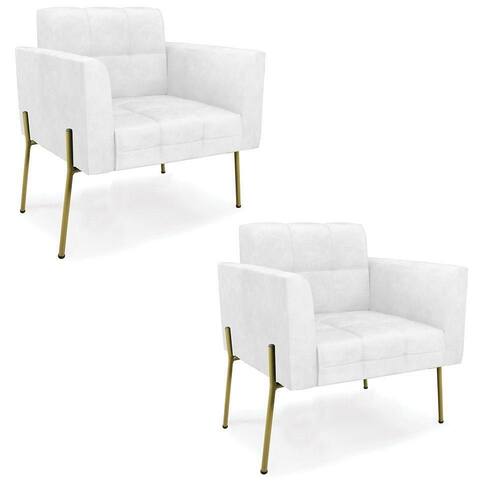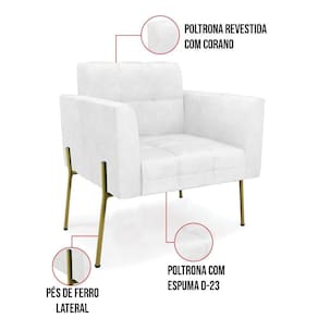 Você gosta de colecionar vários momentos memoráveis com sua família e amigos? Que tal recebê-los, com móveis de altíssima qualidade que só a D'Rossi tem? A Poltrona Elisa é adequada para você! Seu design retrô é a grande tendência do momento. Pode ser usada em diversos espaços da casa, em salas, hall de entrada, quartos, cozinhas, varanda, sacada, escritório, dentre outros. Contém as seguintes características: A estrutura é feita Madeira de Eucalipto 100% de reflorestamento, Pés de Ferro Dourado que além de ser resistente e durável, suporta em média até 120 kg. Assento, encosto e braços, contém enchimento de espuma D-23 e é estofada em tecido Corano no tom Branco, que oferece muito conforto e resistência ao sentar, com aquela sensação de maciez e aconchego. Possui também, detalhes de costura no encosto e assento, resultando em um acabamento impecável, conferindo muito mais valor e elegância ao seu espaço. Para complementar a decoração com essa linda poltrona, a dica é utilizar mantas, almofadas ou vasinho de flor. E pronto, seu cantinho estará perfeito para descansar e relaxar! Aqui, você encontra várias opções, para que seus amigos e familiares se sintam acolhidos. Garanta já seu Kit 2 Poltronas..