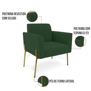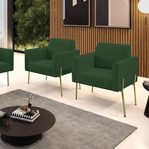 Todo mundo gosta de um ambiente bem decorado, e se for novidade melhor ainda não é mesmo? A D'Rossi, além de entregar beleza, qualidade e confiança aos clientes, ela dispõe das melhores opções em produtos, disponíveis no mercado! Portanto, se você quer um produto sofisticado, opte pela Poltrona Marisa. Ela possui um design lindo e sofisticado, com pés de Ferro Lateral Dourado e revestimento em tecido Veludo, que harmonizam com qualquer ambiente. Esta mobília fica perfeita na sala de estar, recepções, mesa de jantar ou qualquer outro espaço que você queira decorar com estilo e bom gosto. Ela contém uma estrutura em madeira de reflorestamento eucalipto, que garante a resistência e a sustentabilidade do produto. Ela suporta até 120 kg de peso, podendo ser utilizada por pessoas de diferentes biotipos. Ela tem um acabamento reforçado e espuma de qualidade D-23, garantindo flexibilidade e conforto ao usuário. A Poltrona Marisa é um produto de alta qualidade, beleza e funcionalidade. Ela é fácil de transportar, pois tem um peso leve e um tamanho compacto. A Poltrona Marisa é ideal, para dar aquele realce que seu ambiente precisa. Tenho certeza que esse móvel é a melhor compra que você irá fazer. Garanta já seu kit 2 Poltronas Marisa e se acomode da melhor maneira possível!