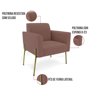 Todo mundo gosta de um ambiente bem decorado, e se for novidade melhor ainda não é mesmo? A D'Rossi, além de entregar beleza, qualidade e confiança aos clientes, ela dispõe das melhores opções em produtos, disponíveis no mercado! Portanto, se você quer um produto sofisticado, opte pela Poltrona Marisa. Ela possui um design lindo e sofisticado, com pés de Ferro Lateral Dourado e revestimento em tecido Veludo Rosê, que harmonizam com qualquer ambiente. Esta mobília fica perfeita na sala de estar, recepções, mesa de jantar ou qualquer outro espaço que você queira decorar com estilo e bom gosto. Ela contém uma estrutura em madeira de reflorestamento eucalipto, que garante a resistência e a sustentabilidade do produto. Ela suporta até 120 kg de peso, podendo ser utilizada por pessoas de diferentes biotipos. Ela tem um acabamento reforçado e espuma de qualidade D-23, garantindo flexibilidade e conforto ao usuário. A Poltrona Marisa é um produto de alta qualidade, beleza e funcionalidade. Ela é fácil de transportar, pois tem um peso leve e um tamanho compacto. A Poltrona Marisa é ideal, para dar aquele realce que seu ambiente precisa. Tenho certeza que esse móvel é a melhor compra que você irá fazer. Garanta já seu kit 2 Poltronas Marisa e se acomode da melhor maneira possível!Dimensões da Poltrona: Altura total: 81 cm Largura total: 76 cm Profundidade total: 64 cm Altura do encosto: 36 cm Largura do assento: 47 cm Profundidade do assento: 48 cm Altura do chão ao assento: 45 cm Espessura do assento: 18 cm Tamanho dos pés: 30 cm Espessura do braço: 9 cm Peso: 14 kg Especificações do Produto Estrutura: Madeira Eucalipto Espuma: D-23 Tecido: Veludo Tipo de pés: Pés de Ferro Dourado Peso suportado: Até 120 Kg Garantia: 90 dias contra defeito de fabricação Montagem: O produto vai montado, apenas parafusar a base Instruções de limpeza: Utilizar um pano limpo e levemente úmido Você irá receber: 02 Poltronas - Entregue em: 02 Volumes