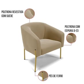 A Poltrona Stella é uma poltrona que combina elegância, conforto e durabilidade. Ela tem um design moderno e sofisticado, com pés de ferro lateral dourado e revestimento em tecido Suede, que harmonizam com qualquer ambiente. Ela é ideal para sala de estar, recepções, mesa de jantar ou qualquer outro espaço que você queira decorar com estilo e bom gosto. Ela tem uma estrutura em madeira de reflorestamento eucalipto, que garante a resistência e a sustentabilidade do produto. Ela suporta até 120 kg de peso, podendo ser utilizada por pessoas de diferentes biotipos. Ela tem um acabamento reforçado e espuma de qualidade D23, que oferece maciez e aconchego. Tem pés em aço carbono e pintura eletrostática, que protegem o produto contra corrosão e desgaste. Ela tem assento com persintas elásticas, que proporcionam flexibilidade e conforto. A Poltrona Stella é um produto de alta qualidade, beleza e funcionalidade. Ela é fácil de transportar, pois tem um peso leve e um tamanho compacto. A Poltrona Stella é um produto que vai fazer a diferença na sua decoração e no seu bem-estar. Ela vai trazer charme, conforto e durabilidade para o seu ambiente. Aproveite essa oferta e leve para casa uma poltrona de qualidade por um preço incrível. Essa é a sua chance de ter uma poltrona maravilhosa por um preço imperdível. Corra e garanta a sua antes que acabe o estoque!