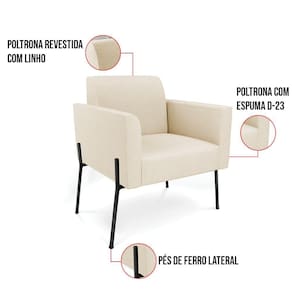 Todo mundo gosta de um ambiente bem decorado, e se for novidade melhor ainda não é mesmo? A D'Rossi, além de entregar beleza, qualidade e confiança aos clientes, ela dispõe das melhores opções em produtos, disponíveis no mercado! Portanto, se você quer um produto sofisticado, opte pela Poltrona Marisa. Ela possui um design lindo e sofisticado, com pés de Ferro Lateral Preto e revestimento em tecido Linho Bege, que harmonizam com qualquer ambiente. Esta mobília fica perfeita na sala de estar, recepções, mesa de jantar ou qualquer outro espaço que você queira decorar com estilo e bom gosto. Ela contém uma estrutura em madeira de reflorestamento eucalipto, que garante a resistência e a sustentabilidade do produto. Ela suporta até 120 kg de peso, podendo ser utilizada por pessoas de diferentes biotipos. Ela tem um acabamento reforçado e espuma de qualidade D-23, garantindo flexibilidade e conforto ao usuário. A Poltrona Marisa é um produto de alta qualidade, beleza e funcionalidade. Ela é fácil de transportar, pois tem um peso leve e um tamanho compacto. A Poltrona Marisa é ideal, para dar aquele realce que seu ambiente precisa. Tenho certeza que esse móvel é a melhor compra que você irá fazer. Garanta já seu kit 2 Poltronas Marisa e se acomode da melhor maneira possível!