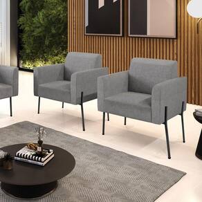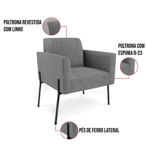 Poltrona Pé de Ferro Preto Kit 2 Decorativa Marisa Linho D03 - D`Rossi - Grafite
