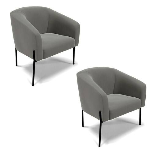 Poltrona Pé De Ferro Preto Kit 2 Stella Suede D03 - D'rossi Cor Grafite