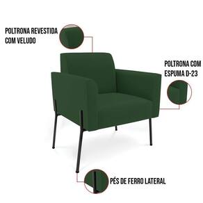 Poltrona Pé De Ferro Preto Para Estúdio Marisa Veludo D03 - D'rossi Cor Verde