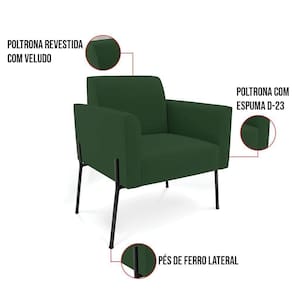Todo mundo gosta de um ambiente bem decorado, e se for novidade melhor ainda não é mesmo? A D'Rossi, além de entregar beleza, qualidade e confiança aos clientes, ela dispõe das melhores opções em produtos, disponíveis no mercado! Portanto, se você quer um produto sofisticado, opte pela Poltrona Marisa. Ela possui um design lindo e sofisticado, com pés de Ferro Lateral Preto e revestimento em tecido Veludo Verde, que harmonizam com qualquer ambiente. Esta mobília fica perfeita na sala de estar, recepções, mesa de jantar ou qualquer outro espaço que você queira decorar com estilo e bom gosto. Ela contém uma estrutura em madeira de reflorestamento eucalipto, que garante a resistência e a sustentabilidade do produto. Ela suporta até 120 kg de peso, podendo ser utilizada por pessoas de diferentes biotipos. Ela tem um acabamento reforçado e espuma de qualidade D-23, garantindo flexibilidade e conforto ao usuário. A Poltrona Marisa é um produto de alta qualidade, beleza e funcionalidade. Ela é fácil de transportar, pois tem um peso leve e um tamanho compacto. A Poltrona Marisa é ideal, para dar aquele realce que seu ambiente precisa. Tenho certeza que esse móvel é a melhor compra que você irá fazer. Garanta já sua Poltrona Marisa e se acomode da melhor maneira possível!