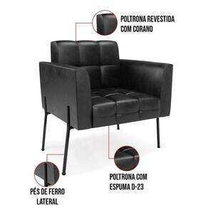 Você gosta de colecionar vários momentos memoráveis com sua família e amigos? Que tal recebê-los, com móveis de altíssima qualidade que só a D'Rossi tem? A Poltrona Elisa é adequada para você! Seu design retrô é a grande tendência do momento. Pode ser usada em diversos espaços da casa, em salas, hall de entrada, quartos, cozinhas, varanda, sacada, escritório, dentre outros. Contém as seguintes características: A estrutura é feita Madeira de Eucalipto 100% de reflorestamento, Pés de Ferro Preto que além de ser resistente e durável, suporta em média até 120 kg. Assento, encosto e braços, contém enchimento de espuma D-23 e é estofada em tecido Corano, que oferece muito conforto e resistência ao sentar, com aquela sensação de maciez e aconchego. Possui também, detalhes de costura no encosto e assento, resultando em um acabamento impecável, conferindo muito mais valor e elegância ao seu espaço. Para complementar a decoração com essa linda poltrona, a dica é utilizar mantas, almofadas ou vasinho de flor. E pronto, seu cantinho estará perfeito para descansar e relaxar! Aqui, você encontra várias opções, para que seus amigos e familiares se sintam acolhidos. Garanta já sua Poltrona.