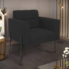 Você gosta de colecionar vários momentos memoráveis com sua família e amigos? Que tal recebê-los, com móveis de altíssima qualidade que só a D'Rossi tem? A Poltrona Elisa é adequada para você! Seu design retrô é a grande tendência do momento. Pode ser usada em diversos espaços da casa, em salas, hall de entrada, quartos, cozinhas, varanda, sacada, escritório, dentre outros. Contém as seguintes características: A estrutura é feita Madeira de Eucalipto 100% de reflorestamento, Pés de Ferro Preto que além de ser resistente e durável, suporta em média até 120 kg. Assento, encosto e braços, contém enchimento de espuma D-23 e é estofada em tecido Veludo no tom Preto, que oferece muito conforto e resistência ao sentar, com aquela sensação de maciez e aconchego. Possui também, detalhes de costura no encosto e assento, resultando em um acabamento impecável, conferindo muito mais valor e elegância ao seu espaço. Para complementar a decoração com essa linda poltrona, a dica é utilizar mantas, almofadas ou vasinho de flor. E pronto, seu cantinho estará perfeito para descansar e relaxar! Aqui, você encontra várias opções, para que seus amigos e familiares se sintam acolhidos. Garanta já sua Poltrona.