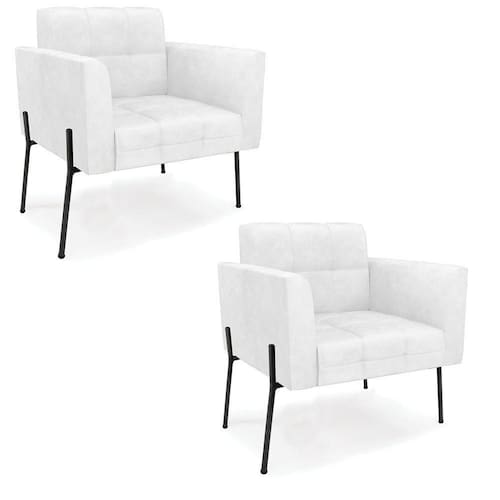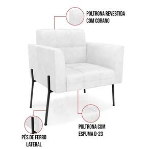 Poltrona Pé De Ferro Preto Para Sala Kit 2 Elisa Corano D03 - D'rossi Cor Branco