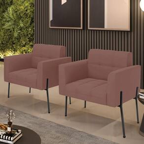 Você gosta de colecionar vários momentos memoráveis com sua família e amigos? Que tal recebê-los, com móveis de altíssima qualidade que só a D'Rossi tem? A Poltrona Elisa é adequada para você! Seu design retrô é a grande tendência do momento. Pode ser usada em diversos espaços da casa, em salas, hall de entrada, quartos, cozinhas, varanda, sacada, escritório, dentre outros. Contém as seguintes características: A estrutura é feita Madeira de Eucalipto 100% de reflorestamento, Pés de Ferro Preto que além de ser resistente e durável, suporta em média até 120 kg. Assento, encosto e braços, contém enchimento de espuma D-23 e é estofada em tecido Veludo, que oferece muito conforto e resistência ao sentar, com aquela sensação de maciez e aconchego. Possui também, detalhes de costura no encosto e assento, resultando em um acabamento impecável, conferindo muito mais valor e elegância ao seu espaço. Para complementar a decoração com essa linda poltrona, a dica é utilizar mantas, almofadas ou vasinho de flor. E pronto, seu cantinho estará perfeito para descansar e relaxar! Aqui, você encontra várias opções, para que seus amigos e familiares se sintam acolhidos. Garanta já seu Kit 2 Poltronas..