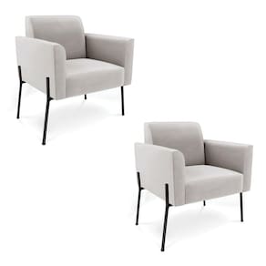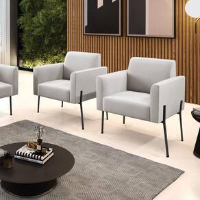 Poltrona Pé de Ferro Preto para Sala Kit 2 Marisa Veludo D03 - D`Rossi - Cinza