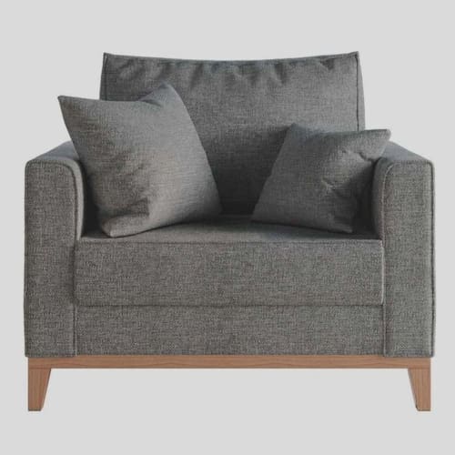 Poltrona Benny Pés Base Em Madeira Em Linho Cotton Para Sala