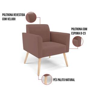 Todo mundo gosta de um ambiente bem decorado, e se for novidade melhor ainda não é mesmo? A D'Rossi, além de entregar beleza, qualidade e confiança aos clientes, ela dispõe das melhores opções em produtos, disponíveis no mercado! Se você quer um produto sofisticado, opte pela Poltrona Marisa. Ela dispõe de um tom lindo no Rosê, uma cor leve, neutra e delicada que combina com qualquer estilo de decoração. Esta mobília fica perfeita na sala, escritório, quarto, varanda coberta e onde mais preferir! Sua estrutura é feita em madeira reforçada de eucalipto proveniente de reflorestamento. No assento/encosto contém um revestimento no tecido Veludo, com estofamento em espuma prorelax D-23, garantindo maior conforto ao usuário. A sustentação da peça é dada pelos Pés Palito Castanho, garantindo uma resistência melhor, para relaxar o dia todo com mais comodidade. A Poltrona Marisa é ideal, para dar aquele realce que seu ambiente precisa. Tenho certeza que, esse móvel é a melhor compra que você irá fazer. Garanta já sua poltrona e se acomode da melhor maneira possível!