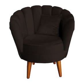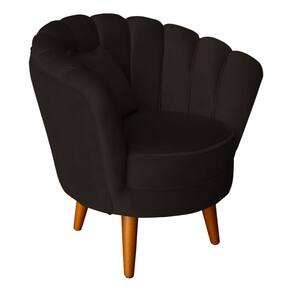 Poltrona Pétala Elegancia Decorativa Com Pés De Madeira Marrom - Marrom Escuro