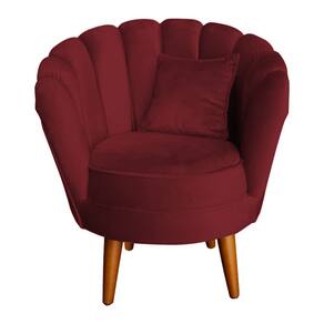 Poltrona Pétala Elegancia Decorativa Com Pés De Madeira Vermelho