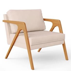 A Poltrona Decorativa Para Sala De Estar Pietra Com Estrutura De Madeira L02 Suede Bege - Lyam Decor se sobressai em qualquer ambiente, permite diversas combinações harmônicas e ainda proporciona muito aconchego. A mistura da estrutura de madeira com o revestimento convencional dela, somados ao seu ar geométrico garantem extrema idade e personalidade para sua decoração.