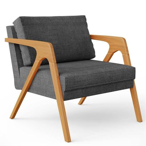 A Poltrona Decorativa Para Sala Estar Pietra Estrutura De Madeira L02 Linho Cinza Escuro - Lyam Decor se sobressai em qualquer ambiente, permite diversas combinações harmônicas e ainda proporciona muito aconchego. A mistura da estrutura de madeira com o revestimento convencional dela, somados ao seu ar geométrico garantem extrema idade e personalidade para sua decoração.