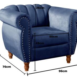 É necessário que haja uma ou mais pessoas no local para receber, desembalar, e conferir o produto. Acompanha Almofadas extras: Não Acompanha Puff: Não Almofada do assento: Removível Almofada do encosto: Não Possui Altura do assento até o chão: 45 cm Altura do Encosto: 80 cm Ambiente Principal: Sala de Estar Complexidade da Montagem: Baixa: pode ser montado por uma pessoa sozinha Cor: Azul Marinho Cor do Produto: Azul Marinho Design Assinado: Não Enchimento do Braço: Espuma D-26 Encosto para a Cabeça: Não Estampado: Não Extensível: Não Itens Inclusos: 1 Poltrona, Manual de montagem e Kit de ferragens Material do Braço: Tecido , Espuma e Madeira Material dos Pés: Madeira Eucalípto Modelo de Poltrona: Fixo Necessita Montagem: Sim Origem do Produto: Nacional Peso: 32 kg Possui Percintas Elásticas: Sim Possui Pés: 04 Possui Rodízio: Não Recomendações de Uso, Manutenção e Limpeza: Limpeza e cuidados: pode ser utilizado aspirador de pó, escova com cerdas macias ou limpeza a seco. Não utilizar produtos químicos, abrasivos ou limpeza a vapor. Evitar exposição prolongada ao sol. Sistema de Montagem: Fixar os Pés Suporta Até (kg): 120 kg Tecido Predominante: Suede Tipo de Assento: Fixo Tipo de Encosto: Fixo Tipo de Poltrona: Decorativa