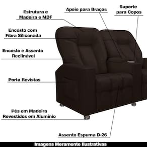 Desenvolvida para superar as suas expectativas, a Poltrona Reclinável 2 Lugares, veio para trazer a experiência cinematográfica sem você sair do conforto de seu lar. Esta poltrona é uma excelente escolha para qualquer ambiente, seja ele sua sala de estar, quarto ou até mesmo sala de cinema, além disso, a poltrona é feita com materiais de alta qualidade, garantindo durabilidade e resistência para longas horas de uso. Uma peça única, confortável e pronta para você. Não perca tempo, adquira já a sua. Dimensões do Produto (L x A x P) 160 cm x 110 cm x 98 cm Profundidade Aberto: 148 cm Altura do Encosto: 70 cm Altura do Assento: 45 cm Largura do Assento: 52 cm Profundidade do assento: 50 cm Características: Estrutura em madeira de reflorestamento de eucalipto e MDF. Encosto reclinável com fibra siliconada. Assento reclinável com espuma D-26. Braça com espuma D-20. Possui mecanismo de 02 estágios e 03 posições. Contém porta copo nas braças e revisteiro na lateral. Pés em madeira revestidos em alumínio. Revestimento em Facto na cor Marrom. Suporta 110 Kg por assento. - A tonalidade do produto real poderá ter ligeira variação devido o lote de tecidos. - A limpeza deve ser feita com pano levemente umedecido em água limpa, sem esfregar, não utilizar produtos abrasivos, desengordurantes, álcool ou solvente.. Observações importantes: - Produto para uso em ambiente interno, não devendo ficar exposto diretamente ao sol, calor e umidade excessivos. - Pode haver alguma diferença de tonalidade entre a imagem e o produto real, por conta do tratamento de imagens e a calibração de cores do seu monitor. - As imagens são meramente ilustrativas, não acompanham objetos de decoração e eletrônicos. - Ao receber a mercadoria, o cliente deve verificar as condições da embalagem, caso haja alguma não assine o de . - Montagem, desmontagem e outras instalações serão de responsabilidade do cliente. Não nos responsabilizamos, no ato da , por subir escadas/elevadores ou pelo por guincho em apartamentos. Eventuais despesas são de responsabilidade do comprador. - Confira as dimensões do produto e certifique-se de que passará normalmente por supostos elevadores, portas, escadas e/ou corredores de sua residência. Mecanismo de abertura do produto: Reclinável | ProductLength: 98 cm | Cor: Marrom | Estilo: Moderno | ProductWarranty: 90 dias após o do produto | ColorFamily: Marrom | OriginState: PR | Material do estofamento: Facto | ColorSupplier: Marrom | Altura: 110 cm | MaterialFamily: Madeira, Espuma, MDF | Material: Madeira de Eucalipto, Fibra siliconada, Percintas Elásticas. Espuma D-20 e D-26, Aluminio | Desenho do tecido: Liso | Model: Romeo | SizeDescription: Altura: 110 cm x Largura: 160 cm x Profundidade: 98 cm | Peso: 76 kg | ColorSimple: Marrom | Color: Marrom | Fabricante: Lyam Decor | ProductInstructions: Produto para uso em ambiente interno, nao devendo ficar exposto ao sol, calor e umidade excessivos. | ProductContents: 01 Poltrona | Profundidade: 98 cm | SupplierSimpleName: Poltrona Reclinável 2 Lugares Sala de Cinema Romeo F05 Facto Marrom - Lyam Decor | ProductWidth: 160 cm | Linha: Sala de Cinema | Tipo de produto: Poltrona | Unidades por kit: 1 | Formato do sofá: Ergonômico | Requer montagem: Não | ProductWeight: 76 kg | OriginCountry: | Densidade da espuma do assento: Espuma D-26 | Material de enchimento do encosto: Fibra Siliconada | Peso máximo suportado: 110 kg | ProductHeight: 110 cm | Largura: 160 cm