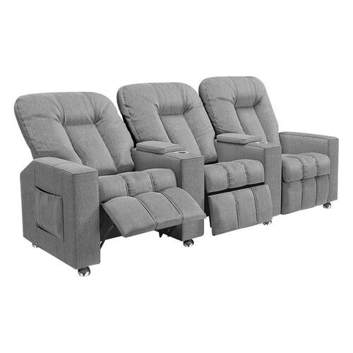 Poltrona Reclinável 3 Lugares Para Sala De Cinema Pequim Linho Cinza - Gran Belo
