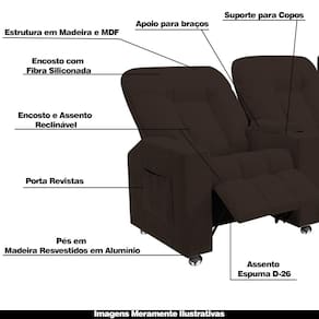 Contém porta copo nas braças e revisteiro na lateral.