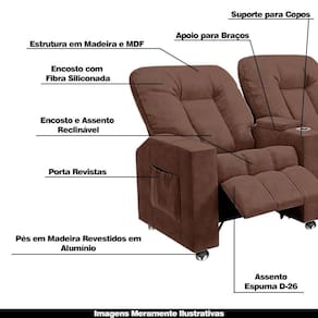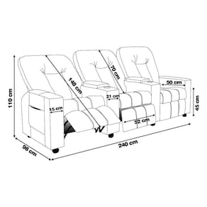 Desenvolvida para superar as suas expectativas, a Poltrona Reclinável 3 Lugares, veio para trazer a experiência cinematográfica sem você sair do conforto de seu lar. Esta poltrona é uma excelente escolha para qualquer ambiente, seja ele sua sala de estar, quarto ou até mesmo sala de cinema, além disso, a poltrona é feita com materiais de alta qualidade, garantindo durabilidade e resistência para longas horas de uso. Uma peça única, confortável e pronta para você. Não perca tempo, adquira já a sua. Dimensões do Produto (L x A x P) 240 cm x 110 cm x 98 cm Profundidade Aberto: 148 cm Altura do Encosto: 70 cm Altura do Assento: 45 cm Largura do Assento: 52 cm Profundidade do assento: 50 cm Características: Estrutura em madeira de reflorestamento de eucalipto e MDF. Encosto reclinável com fibra siliconada. Assento reclinável com espuma D-26. Braça com espuma D-20. Possui mecanismo de 02 estágios e 03 posições. Contém porta copo nas braças e revisteiro na lateral. Pés em madeira revestidos em alumínio. Revestimento em Veludo na cor Terracota. Suporta 110 Kg por assento. - A tonalidade do produto real poderá ter ligeira variação devido o lote de tecidos. - A limpeza deve ser feita com pano levemente umedecido em água limpa, sem esfregar, não utilizar produtos abrasivos, desengordurantes, álcool ou solvente.. Observações importantes: - Produto para uso em ambiente interno, não devendo ficar exposto diretamente ao sol, calor e umidade excessivos. - Pode haver alguma diferença de tonalidade entre a imagem e o produto real, por conta do tratamento de imagens e a calibração de cores do seu monitor. - As imagens são meramente ilustrativas, não acompanham objetos de decoração e eletrônicos. - Ao receber a mercadoria, o cliente deve verificar as condições da embalagem, caso haja alguma não assine o de . - Montagem, desmontagem e outras instalações serão de responsabilidade do cliente. Não nos responsabilizamos, no ato da , por subir escadas/elevadores ou pelo por guincho em apartamentos. Eventuais despesas são de responsabilidade do comprador. - Confira as dimensões do produto e certifique-se de que passará normalmente por supostos elevadores, portas, escadas e/ou corredores de sua residência. ProductWeight: 112 kg | Color: Laranja | SupplierSimpleName: Poltrona Reclinável 3 lugares para Sala de Cinema Romeo F05 Veludo Terracota - Lyam Decor | Material de enchimento do encosto: Fibra Siliconada | Material: Madeira de Eucalipto, Fibra siliconada, Percintas Elásticas. Espuma D-20 e D-26, Aluminio | ColorSupplier: Terracota | Cor: Terracota | ProductWarranty: 90 dias após o do produto | Peso máximo suportado: 110 kg | MaterialFamily: Madeira, Espuma, MDF | Linha: Sala de Cinema | ProductLength: 98 cm | ColorSimple: Laranja | Fabricante: Lyam Decor | Formato do sofá: Ergonômico | SizeDescription: Altura: 110 cm x Largura: 240 cm x Profundidade: 98 cm | OriginState: PR | Requer montagem: Não | Mecanismo de abertura do produto: Reclinável | ColorFamily: Laranja | Densidade da espuma do assento: Espuma D-26 | ProductContents: 01 Poltrona | Altura: 110 cm | Tipo de produto: Poltrona | Profundidade: 98 cm | OriginCountry: | Unidades por kit: 1 | Material do estofamento: Veludo | Model: Romeo | Estilo: Moderno | ProductHeight: 110 cm | Peso: 112 kg | Largura: 240 cm | ProductInstructions: Produto para uso em ambiente interno, nao devendo ficar exposto ao sol, calor e umidade excessivos. | ProductWidth: 240 cm | Desenho do tecido: Liso