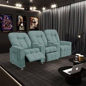 Poltrona Reclinável 3 Lugares Para Sala De Cinema Pequim Veludo Azul Claro - Gran Belo