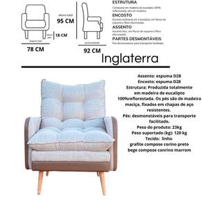 Linho Premium, Madeira de Eucalipto, Espuma, Fibra de SiliconeO encosto reclinável em 3 posições, combinado com assento e encosto fixos em espuma e fibra de silicone, oferece conforto máximo. Os pés removíveis em madeira facilitam o transporte e reposicionamento, enquanto o design com braços e puff proporciona relaxamento completo, perfeito para momentos de descanso.