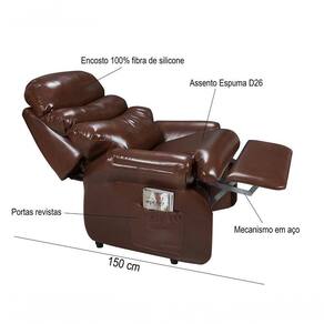 Quem nunca sonhou em ter um móvel grandão desse para assistir aos programas de preferidos? Agora chegou a sua hora de fazer isso se tornar realidade com a Poltrona Reclinável Barão! Extremamente confortável, é ideal para proporcionar momentos mais aconchegantes a você e aos seus convidados. Tem o revestimento em Courissimo, tecido macio e de textura agradável, e o enchimento fofinho do encosto é fibra 100% siliconada, e o assento é feito de espuma e percintas elásticas e possui porta revista lateral. Versátil, ela é reclinável, podendo ser em vários ambientes.