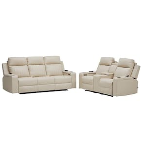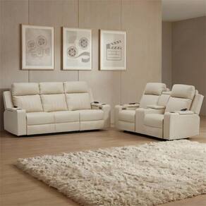 Poltrona Reclinável Cinema 2 E 3 Lugares Baú Usb Pu Moscou Sint Bg Z57 - Mpozenato - Bege