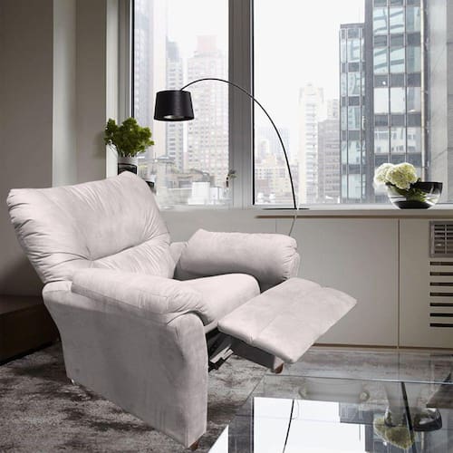 2 Estágios. Medidas Altura Total Fechada= 106 cm Altura Total Deitada = 0.93 cm ALtura e4ncosto = 0.63 cm Altura Assento = 0.46 cm Profundidade total Fechada = 0.78 cm Profundidade Total Aberta= 147 cm Largura Total 0.90 cm Largura Assento = 0.54 cm Profundidade Assento .050 cm Cintas elásticas de 50mm de largura Poltrona com sistema reclinável com apoio para os pés Versátil, pode ser utilizada em vários ambientes Confeccionada em suede Apoio dos braços, assento e encosto almofadados Suporta até 130kg Ean: 7908548512371