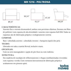 Poltrona Reclinável Mh-1216 Herval Estofada Sem Massageador Marrom B É um cantinho confortável na sua sala de estar ou quarto que você quer? Com esse móvel você pode ter! Já imaginou que delícia vão ser os seus momentos de descanso ou leitura com o conforto da poltrona MH-1216? Ela é reclinável, estofada e revestida em tecido ou couro macio para garantir uma sensação mais suave quando em contato com a pele e, de quebra, tem um estilo único, com formato perfeito para abraçar o seu corpo durante o uso. Sua estrutura em madeira de eucalipto entrega mais resistência e qualidade, dando mais segurança na hora de usa-la. Há outras possibilidades de acabamento para o revestimento. Produto: Poltrona Reclinável MH-1216 Herval Estofada sem Massageador Marrom B | Garantia (via): 6 | Cor: Marrom | Materiais: Tecido, Espuma, Madeira | Tonalidade: Marrom | Estilo de Decoração: Vintage | Material da estrutura: Madeira | Linha: MH-1216 | Montagem: Desmontado | Marca: Herval | Cômodo Indicado: Salas | Tipo de Base: Fixa | Atributos: Versátil, Resistente, Confortável | Área de uso: Interna | Garantia (tempo): 6 meses | Garantia (descritivo): Garantia contra defeitos de fabricação de 06 meses. Consulte as nossas políticas. | Peso (kg): 32.00 | Capacidade de Peso: 120 | Medidas: Largura (cm): 89.00 | Medidas: Profundidade (cm): 93.00 | Medidas: Altura (cm): 93.00 | Medidas: Altura até o Assento (cm): 47.00 | Possui Braços?: Sim | Possui Braços Reguláveis?: Não | Entregue Montado?: Não | Possui Manual de Montagem?: Acompanha o Produto | Origem do Produto: Nacional | Conservação e Manutenção: Limpeza com pano úmido em solução de água ou detergente neutro. Secar em seguida. | Possui Estrutura Giratória?: Não | Possui Estrutura Reclinável?: Sim | Possui Regulagem de Inclinação?: Sim | Tipo de Assento: Reclinável | Tipo de Encosto: Regulável | Tipo de Poltrona: Reclinável | Estado de Origem: RS | Conteúdo da Embalagem: 1 Poltrona | Height: 93 CENTIMETERS | Width: 89 CENTIMETERS | SideToSide: 93 CENTIMETERS