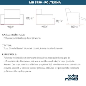 Poltrona Reclinável Mh-3678 Herval Estofada Com Massageador Preto K Nada mais prazeroso que poder chegar em casa depois de um dia cansativo e poder descansar em uma linda e confortável poltrona reclinável, não é mesmo? A poltrona reclinável MH-3678 possui uma estrutura em madeira de eucalipto de reflorestamento entregando toda a resistência e durabilidade necessária e para deixar melhor ainda, ela tem um sistema de massagens que vão fazer com que você relaxe e tire todo o cansaço do corpo. Seu estofado revestido em tecido ou couro é super macio para garantir uma sensação mais suave quando em contato com a pele, e de quebra, tem um estilo único, com formato perfeito para abraçar e o seu corpo durante o uso. Sendo a escolha perfeita para você poder descansar e se sentir nas nuvens, depois de um dia cheio. Há outras possibilidades de acabamento para o revestimento. Produto: Poltrona Reclinável MH-3678 Herval Estofada com Massageador Preto K | Garantia (via): 6 | Cor: Preto | Materiais: Tecido, Espuma, Aço, Madeira | Estilo de Decoração: Vintage | Tonalidade: Preto | Linha: MH-3678 | Material da estrutura: Madeira | Montagem: Desmontado | Marca: Herval | Cômodo Indicado: Salas | Tipo de Base: Giratória | Atributos: Versátil, Resistente, Confortável | Área de uso: Interna | Garantia (tempo): 6 meses | Garantia (descritivo): Garantia contra defeitos de fabricação de 06 meses. Consulte as nossas políticas. | Peso (kg): 62.00 | Capacidade de Peso: 120 | Medidas: Largura (cm): 97.00 | Medidas: Profundidade (cm): 99.00 | Medidas: Altura (cm): 103.00 | Medidas: Altura até o Assento (cm): 47.00 | Possui Braços?: Sim | Conteúdo da Embalagem: 1 Poltrona | Entregue Montado?: Não | Possui Manual de Montagem?: Acompanha o Produto | Origem do Produto: Nacional | Conservação e Manutenção: Limpeza com pano seco, escova com cerdas macias ou aspirador. | Possui Estrutura Giratória?: Sim | Possui Estrutura Reclinável?: Sim | Possui Regulagem de Inclinação?: Sim | Densidade da Espuma (Assento): D33 | Tipo de Assento: Reclinável | Tipo de Encosto: Regulável | Tipo de Poltrona: Reclinável | Estado de Origem: RS | Height: 103 CENTIMETERS | Width: 97 CENTIMETERS | SideToSide: 99 CENTIMETERS