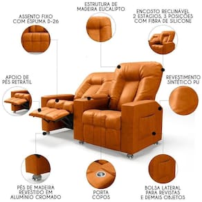 A Poltrona Reclinável Para Cinema 2 Lugares Praddo FH9 PU Whisky, da Mpozenato é a peça projetada para oferecer o máximo conforto e ter seu cinema particular.