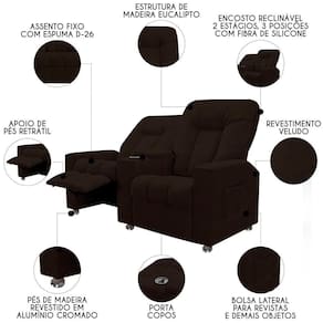 A Poltrona Reclinável Para Cinema 2 Lugares Praddo FH9 Veludo Marrom, da Mpozenato é a peça projetada para oferecer o máximo conforto e ter seu cinema particular.