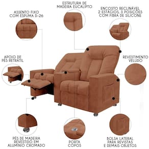 A Poltrona Reclinável Para Cinema 2 Lugares Praddo FH9 Veludo Terracota, da Mpozenato é a peça projetada para oferecer o máximo conforto e ter seu cinema particular.