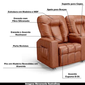 Que tal criar seu próprio home cinema? Aqui, vamos mostrar como você pode montar o seu! Com o local adequado, alguns itens decorativos e uma poltrona ideal, você garantirá um espaço confortável e imersivo. O primeiro passo é investir em equipamentos de alta qualidade! Olha só que lindeza a nossa Poltrona Reclinável Para Cinema 3 Lugares. Ela foi projetada para proporcionar máximo conforto e funcionalidade, esta poltrona é a escolha ideal para quem busca relaxamento, estilo e uma experiência de cinema privada. Seu mecanismo reclinável permite ajustar a poltrona conforme suas necessidades, independente, com 2 estágios e 3 posições ajustáveis, seja para assistir a um filme, ler um livro ou simplesmente descansar. Com capacidade para suportar até 110 kg cada oferecendo segurança e estabilidade ao consumidor. O revestimento em PU Camel oferece um toque de sofisticação e conforto, enquanto a estrutura em madeira de eucalipto garante resistência e durabilidade. O sistema de abertura fácil permite ajustar a poltrona sem esforço: basta colocar as mãos nos braços, inclinar o corpo para trás e empurrar as mãos para frente. O encosto e o assento são sustentados por percintas elásticas. Eles são preenchidos com fibra siliconada e espuma D-26 Soft, respectivamente, para um conforto adicional. Os Encosto e Assento da poltrona é reclinável e nos braços contêm enchimento em espuma D-20, proporcionando um apoio suave e confortável. O assento (fixo) e o apoio de Pés Retrátil proporcionam um apoio perfeito para suas pernas, aumentando o conforto. O encosto reclinável, possibilita ajustá- lo para a posição ideal de relaxamento. Já os pés (fixos) foram feitos em madeira e revestidos em alumínio cromado, adicionando um toque de elegância ao produto. E tem mais!! Ela contém Porta Copos Embutido no Braço e um revisteiro lateral prático nas braças com um bolso prático para armazenar revistas e livros, mantendo tudo ao seu alcance. Com um design moderno e prático, esta poltrona se tornará o destaque da sua sala de estar. Afinal, sua casa merece a Poltrona Reclinável Para Cinema 3 Lugares. Adquira a sua agora mesmo e transforme sua sala de estar em um verdadeiro cinema!
