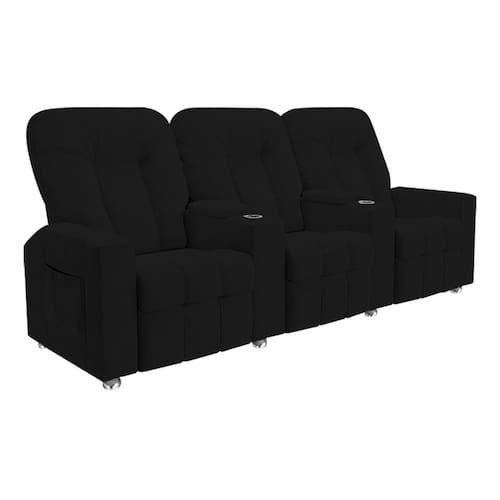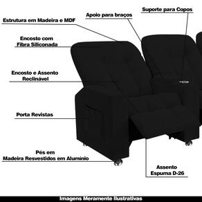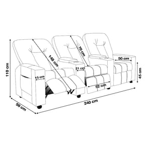 Que tal criar seu próprio home cinema? Aqui, vamos mostrar como você pode montar o seu! Com o local adequado, alguns itens decorativos e uma poltrona ideal, você garantirá um espaço confortável e imersivo. O primeiro passo é investir em equipamentos de alta qualidade! Olha só que lindeza a nossa Poltrona Reclinável Para Cinema 3 Lugares. Ela foi projetada para proporcionar máximo conforto e funcionalidade, esta poltrona é a escolha ideal para quem busca relaxamento, estilo e uma experiência de cinema privada. Seu mecanismo reclinável permite ajustar a poltrona conforme suas necessidades, independente, com 2 estágios e 3 posições ajustáveis, seja para assistir a um filme, ler um livro ou simplesmente descansar. Com capacidade para suportar até 110 kg cada oferecendo segurança e estabilidade ao consumidor. O revestimento em Veludo Preto oferece um toque de sofisticação e conforto, enquanto a estrutura em madeira de eucalipto garante resistência e durabilidade. O sistema de abertura fácil permite ajustar a poltrona sem esforço: basta colocar as mãos nos braços, inclinar o corpo para trás e empurrar as mãos para frente. O encosto e o assento são sustentados por percintas elásticas. Eles são preenchidos com fibra siliconada e espuma D-26 Soft, respectivamente, para um conforto adicional. Os Encosto e Assento da poltrona é reclinável e nos braços contêm enchimento em espuma D-20, proporcionando um apoio suave e confortável. O assento (fixo) e o apoio de Pés Retrátil proporcionam um apoio perfeito para suas pernas, aumentando o conforto. O encosto reclinável, possibilita ajustá- lo para a posição ideal de relaxamento. Já os pés (fixos) foram feitos em madeira e revestidos em alumínio cromado, adicionando um toque de elegância ao produto. E tem mais!! Ela contém Porta Copos Embutido no Braço e um revisteiro lateral prático nas braças com um bolso prático para armazenar revistas e livros, mantendo tudo ao seu alcance. Com um design moderno e prático, esta poltrona se tornará o destaque da sua sala de estar. Afinal, sua casa merece a Poltrona Reclinável Para Cinema 3 Lugares. Adquira a sua agora mesmo e transforme sua sala de estar em um verdadeiro cinema!